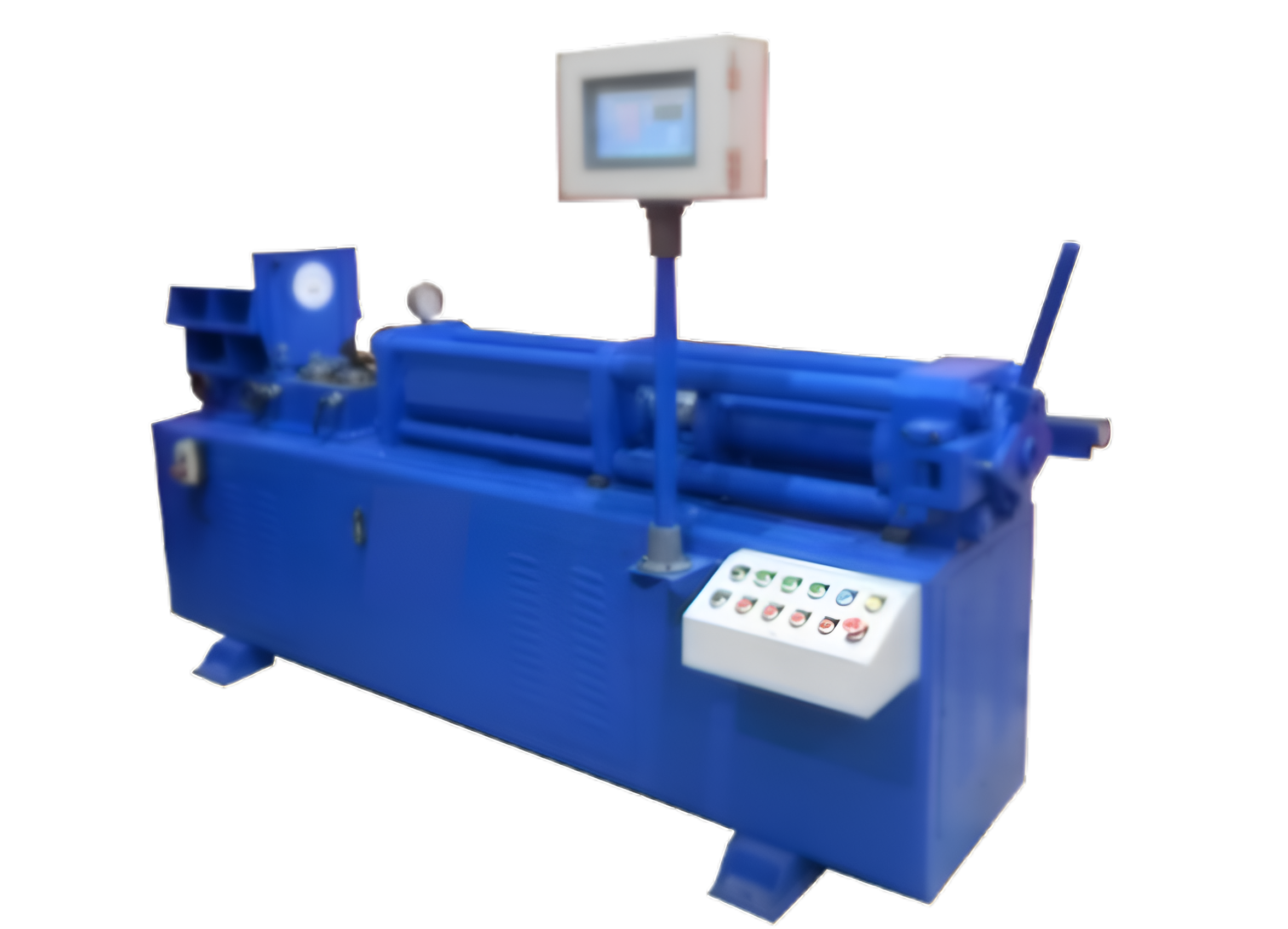 In this case, the operator skill required to adjust the flow of the flux is reduced. However, the actual pressure at which the extrusion happens is entirely dependent upon the amount of silicate added during wet mixing. The operator need not adjust any flow valve to control the flow. In case of any fine adjustment in flow required to control the Less coating & Over coating, the same can be set on the HMI. Once the Piston has reached its end position, the wire feeding stops & the Piston returns automatically to its home position. The front Flux gate is opened & the new slugs are loaded to repeat the cycle.